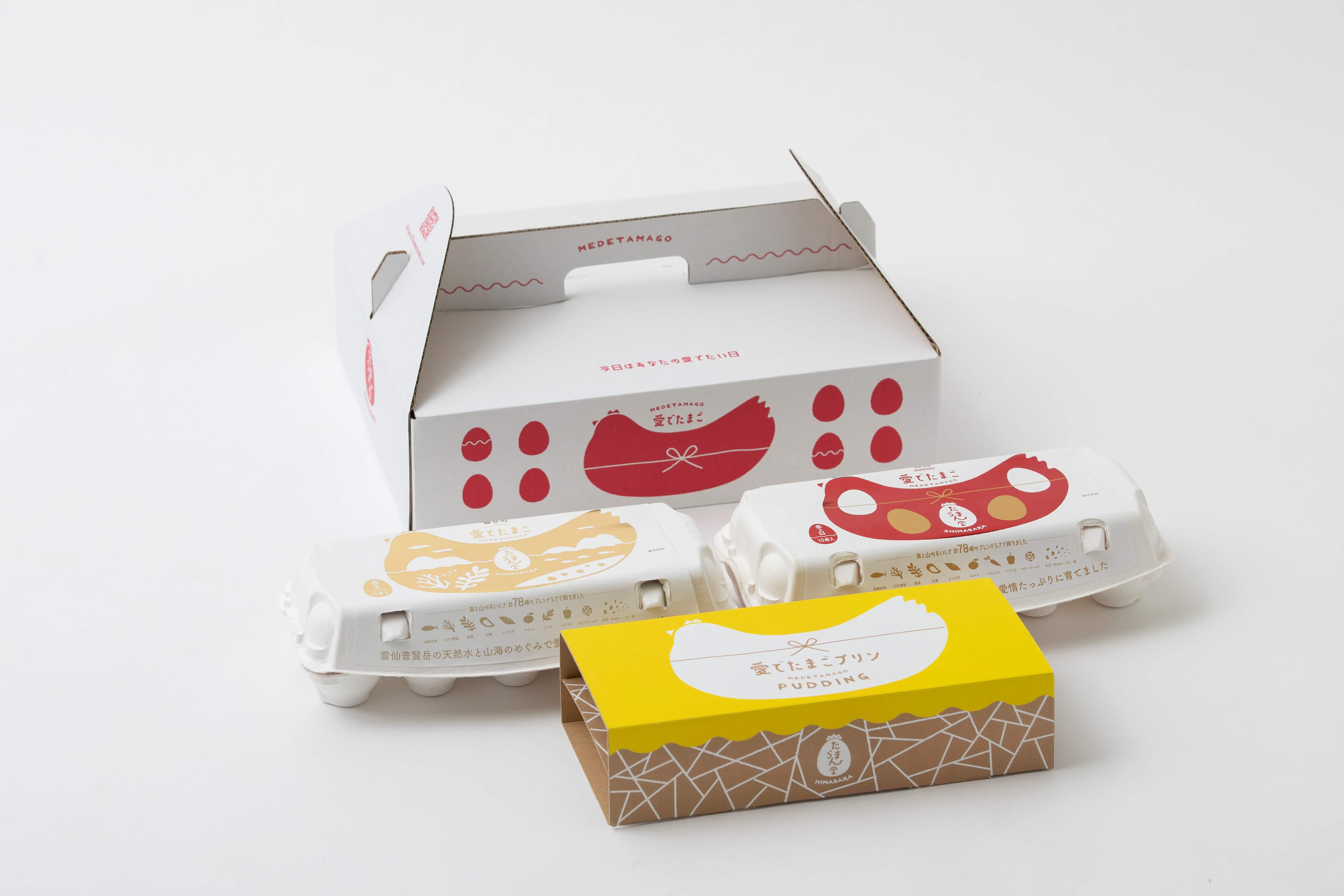 「幸せの愛でたまご」「紅白愛でたまご」「愛でたまごプリン」たまごからデザートまで楽しめるよくばりパック